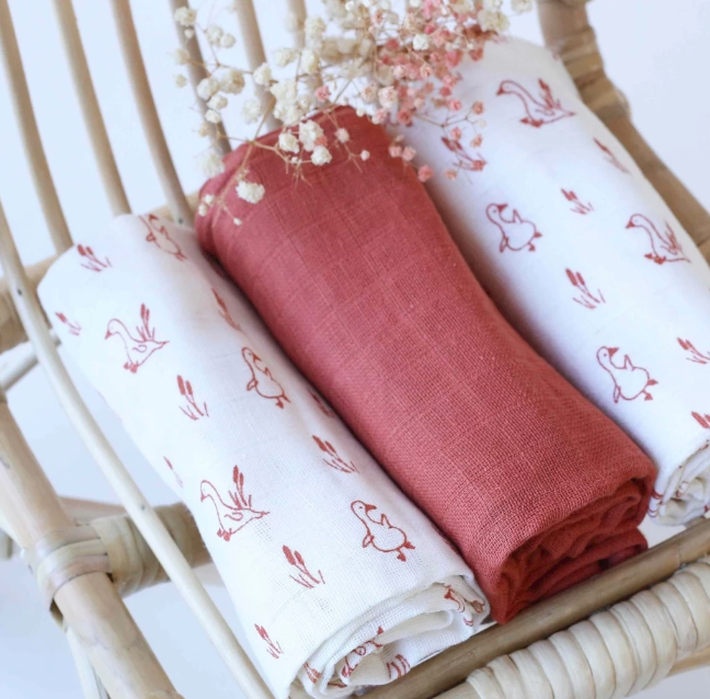 Mulltücher mit Gänse-Motiv für Babyzeit