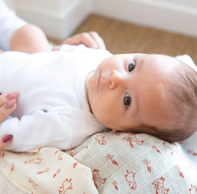 Die großzügige Fläche von 70×70 cm macht sie ideal zum Einwickeln, Unterlegen oder Abdecken, während das dezente Motiv in Natur- oder Terrakotta-Tönen eine harmonische Ergänzung für moderne Babyzimmer darstellt. Die natürliche Baumwolle ist besonders hautfreundlich und damit bestens geeignet für empfindliche Kinderhaut.
