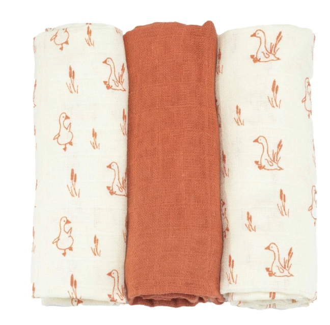3er-Set Baby-Mulltücher 70×70 cm – Gänse-Motiv