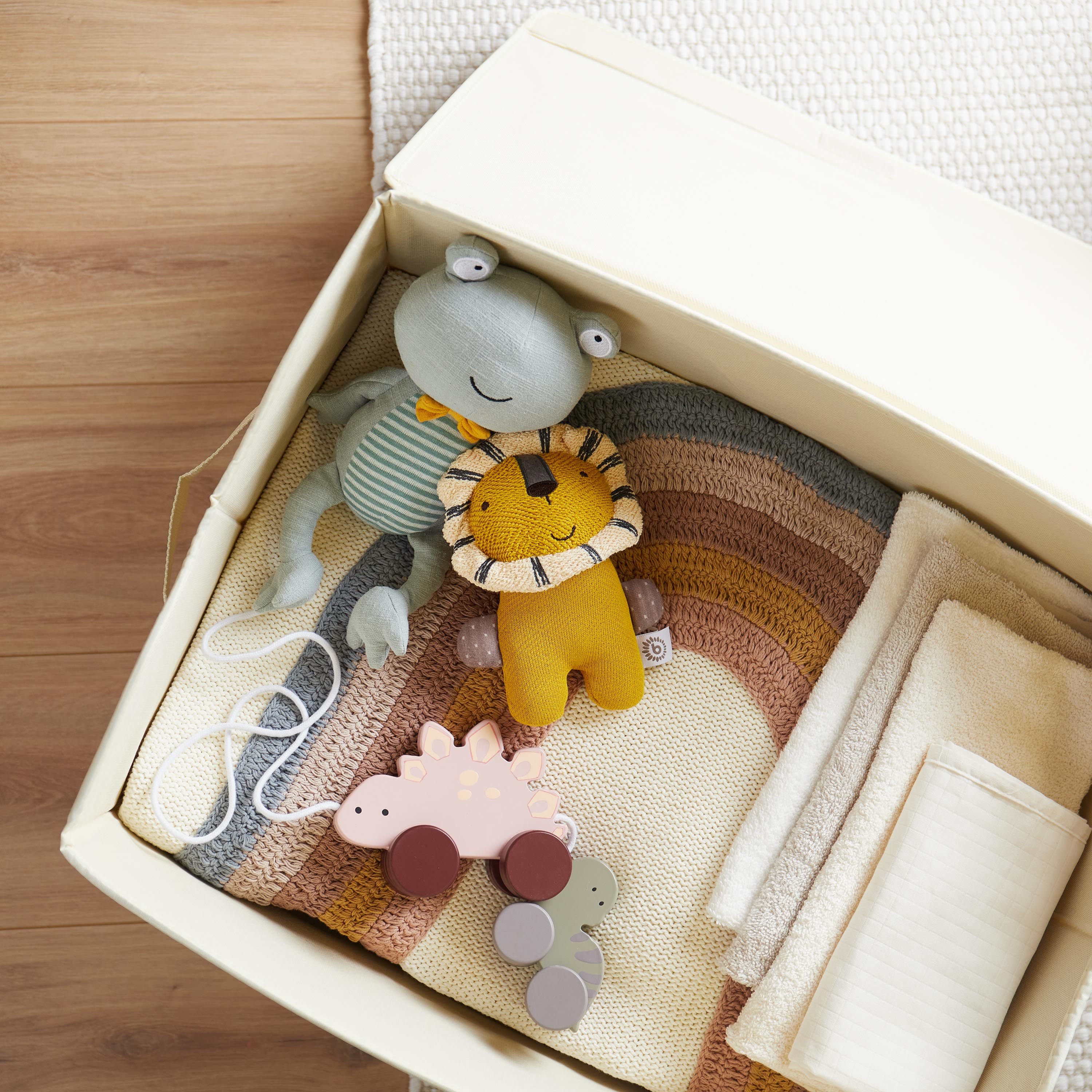Durch den stabilen Deckel bleibt der Inhalt gut geschützt. Gleichzeitig wirkt die Umgebung aufgeräumt, da die Box einen geschlossenen und sauberen Gesamteindruck vermittelt. Ob im Regal, in der Ecke oder frei im Raum – die Box lässt sich flexibel einsetzen und überzeugt durch ihr funktionales Design.