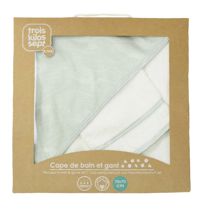 Der Baby-Badeumhang mit Waschlappen ist das perfekte Duo für sanfte Pflege und kuschelige Wärme nach dem Baden.