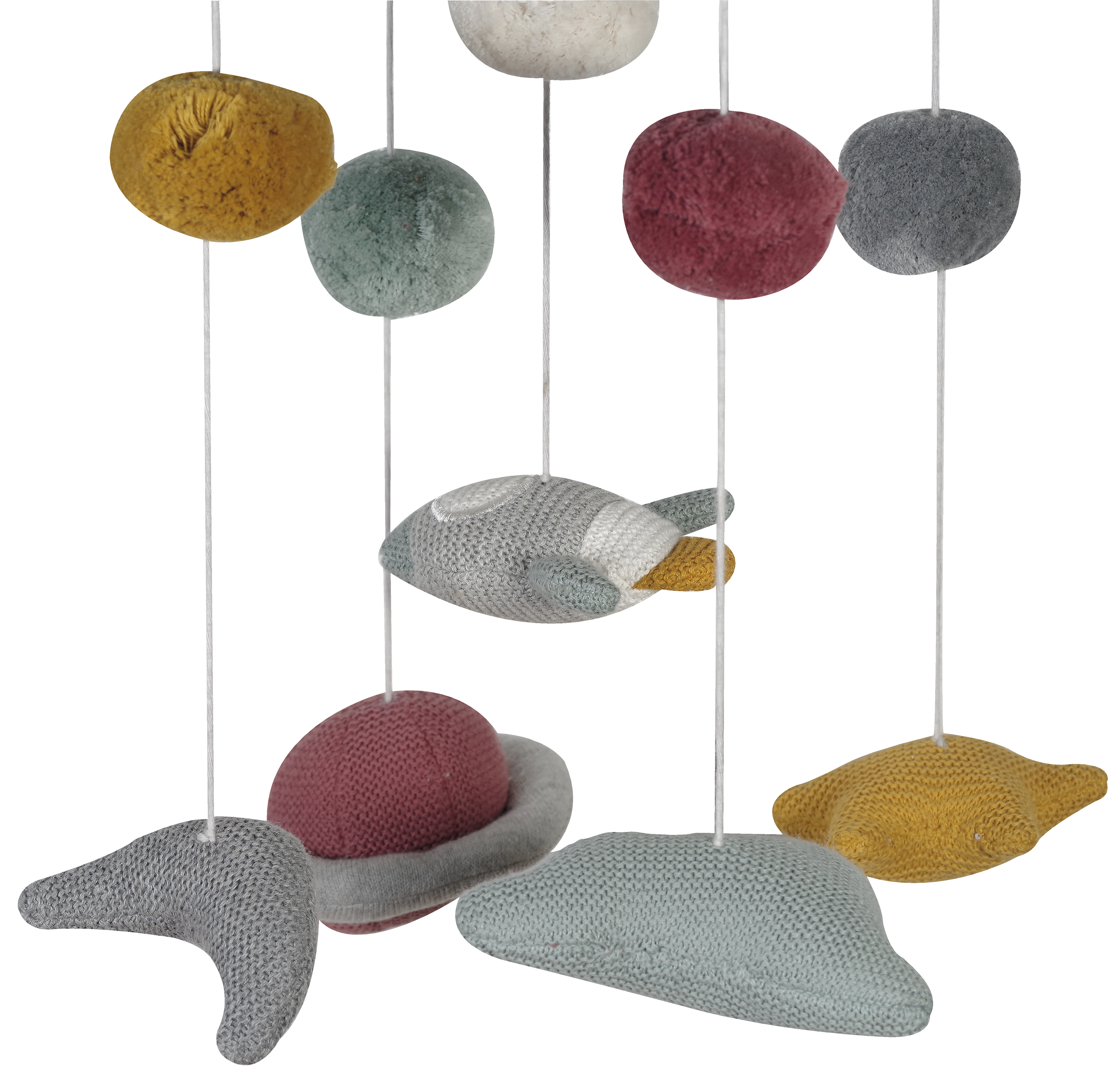 Die stilvollen Farbtöne passen perfekt zu modernen Kinderzimmern und kombinieren skandinavisches Design mit einem warmen, natürlichen Look. Die weichen Filzelemente bewegen sich leicht im Luftzug und schaffen ein beruhigendes Spiel aus Bewegung und Farbe. Ideal über dem Babybett, der Wickelkommode oder einer Spielecke.