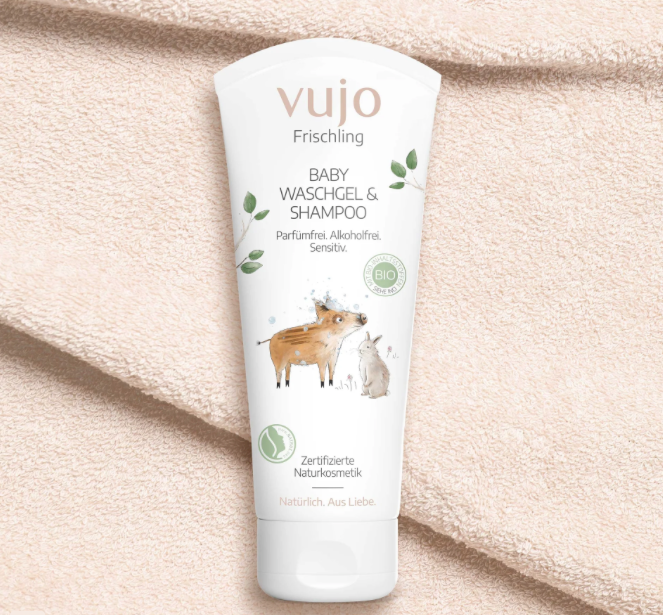 vujo Baby Shampoo parfümfrei – Naturkosmetik Baby Waschgel & Shampoo 200 ml